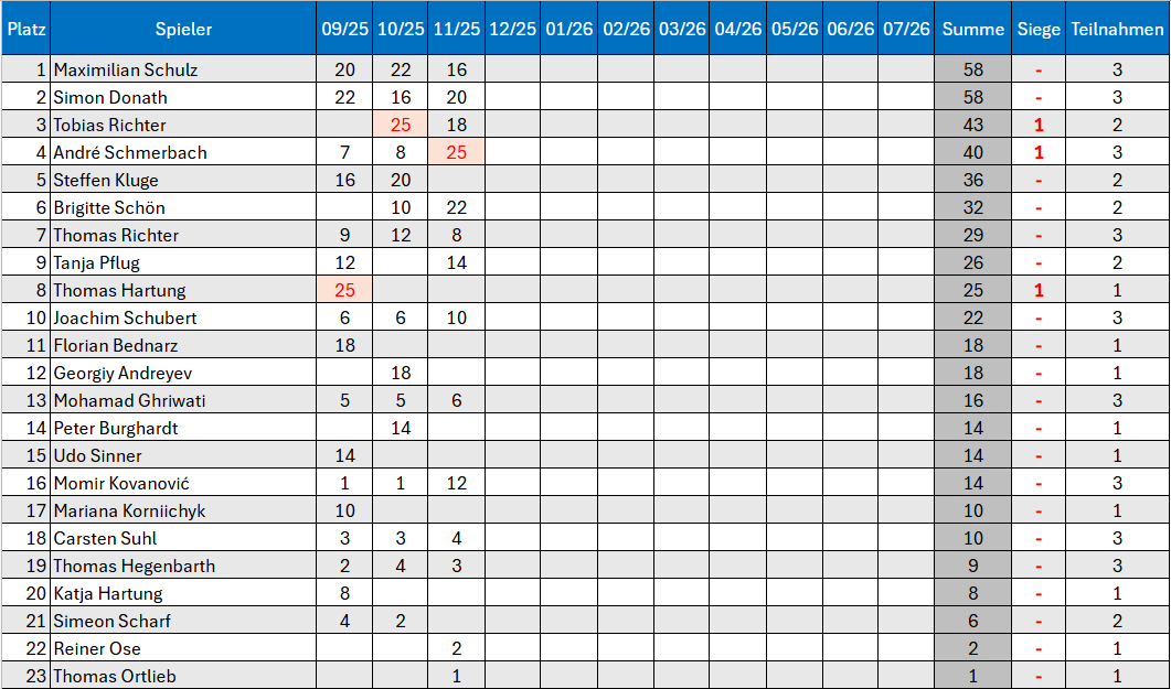 Endstand 3. Mampfe – Blitz vom 13.11.2025: