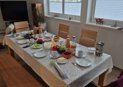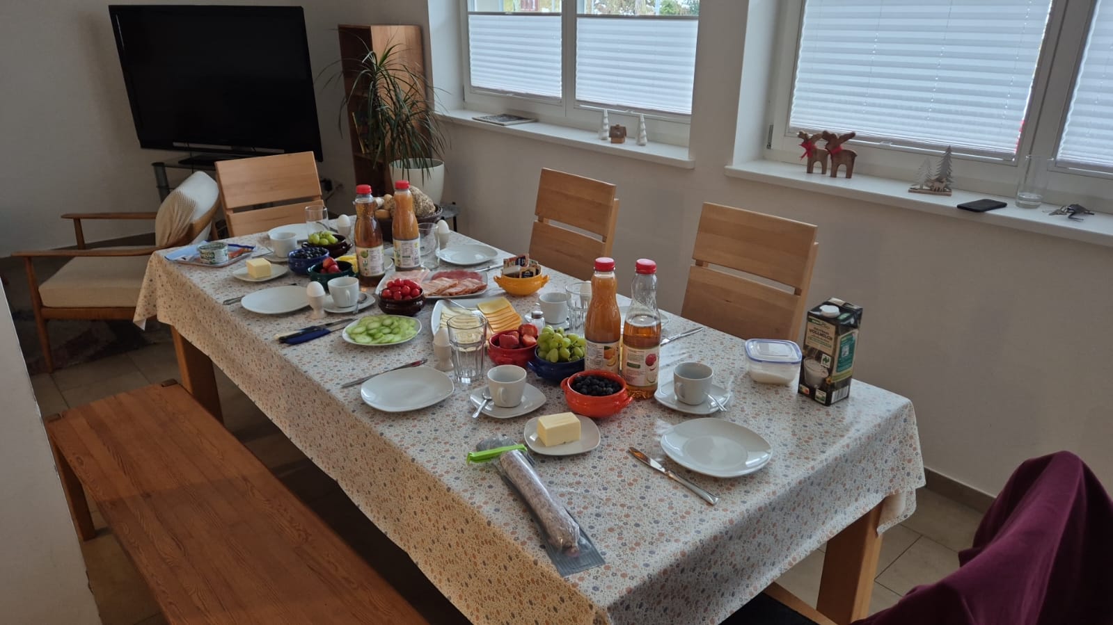 Parallel verbrachten die restlichen MerseburgerInnen die Zeit entweder in der gebuchten Ferienwohnung oder fuhren nach Dippoldiswalde, um Verpflegung für den restlichen Aufenthalt einzukaufen. Susi reiste als Einzige erst am Samstag an und traf pünktlich zum von André zubereiteten Mittagessen ein.