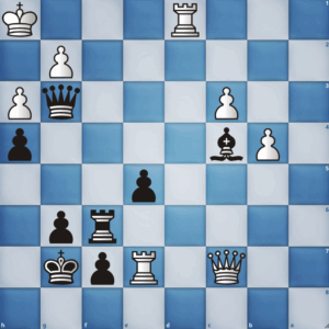 - Max: Ld5! zum 0-1 mit diversen Mattdrohungen (droht Dxg2#, auf Td2 folgt Tf1#, auf Tg1 Dxh3#, lediglich Txf7+ verhindert das direkte Matt, gibt jedoch zu viel Material her)