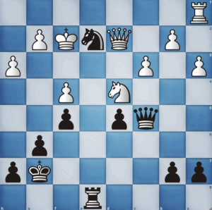 - Simon: Te4! Dxe2 Txe2+ Kxe2 -+